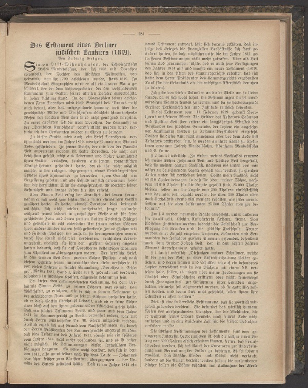 Das Testament eines Berliner jüdischen Bankiers ( 1819 )