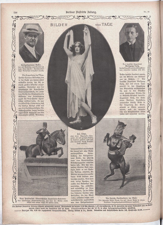 Die Berliner Illustrierte Zeitung erscheint wöchentlich einmal. Abonnement im Inland: 5,20 Mk. Jährlich; 1,30 vierteljährlich; 45 Pf. monatlich bei jeder Postanstalt und im Buchhandel, sowie durch die Expedition frei ins Haus. Einzelnummern sind für 10 Pf. In allen Zeitungsverkaufsstellen erhältlich.