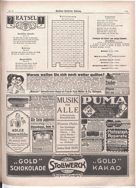 --- Anzeigen Mk. 4,00 bis 5-gespaltene Nonpareille-Zeile. Verlag Ullstein & Co. Berlin Redaktion und Geschäftsstelle Berlin SW, Kochstr. 23/24.----