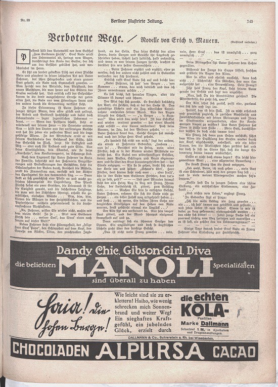 (745) Verbotene Wege. / Novelle von Erich v. Mauern. (Nachdruck verboten)