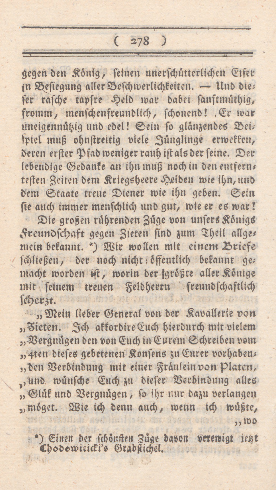 *) Einen der schönsten Züge davon verewigt jetzt Chodowiecki`s Grabstichel.