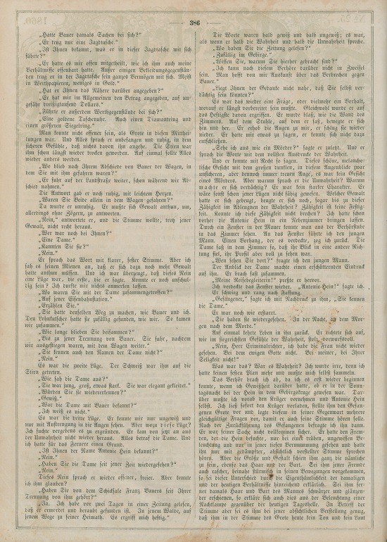 „Er hatte es mir offen mitgetheilt, wie ich ihm auch meine Verhältnisse offenbart hatte. Außer einigen Bekleidungsgegenständen trug er in der Jagdtasche sein ganzes Vermögen mit sich. Meist in Werthpapieren, weniges in Gold.“