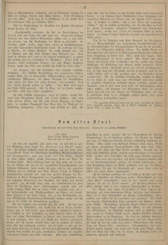 [13]... Eine kleine Geschichte, die unsern Lesern im Allgemeinen vielleicht schon bekannt ist, finde, da ihre Einzelnheiten meist unrichtig erzählt werden, hier noch einen Platz: